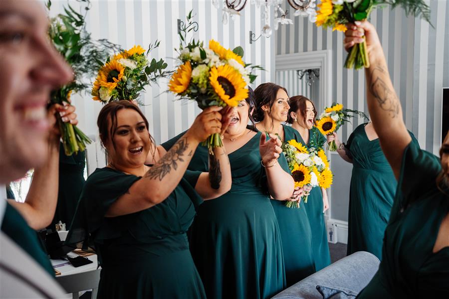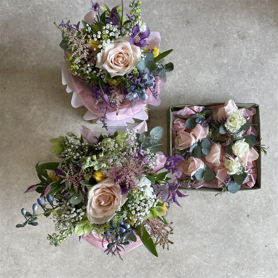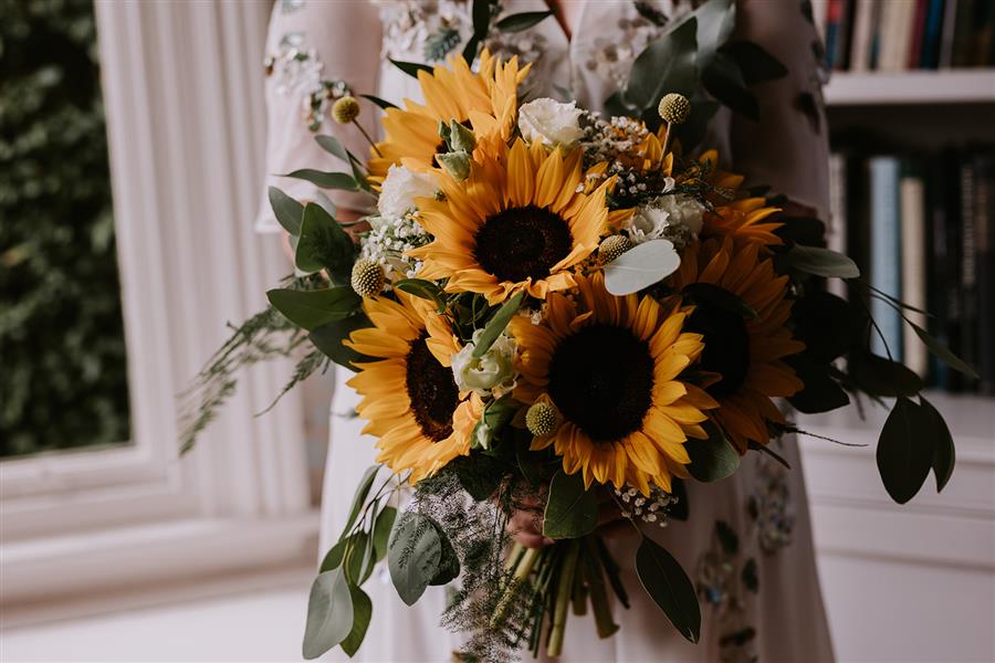 'The bouquet was completely perfect and exactly what I had hoped for. The sunflowers were amazing and they smelled so good! Everyone loved their little buttonholes and corsages as well. Thank you so much'