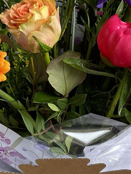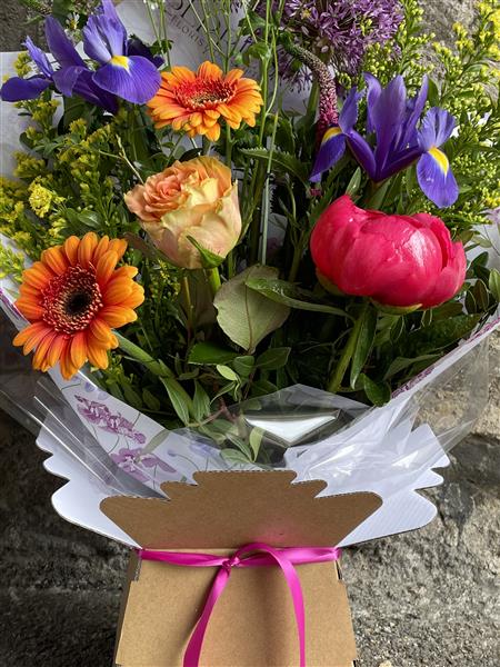 This bouquet is beautifully designed, wrapped and delivered direct from our shop locally. It will arrive aqua-packed and presented in a box. We use recyclable packaging where possible.